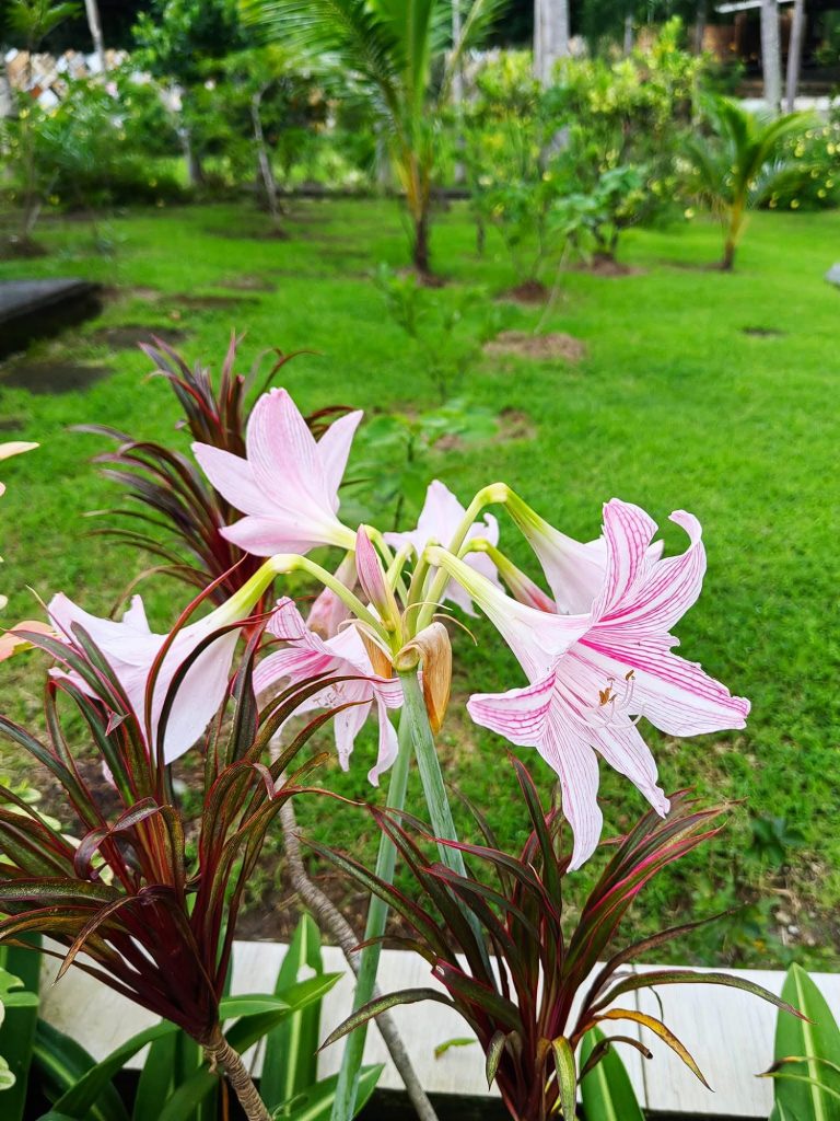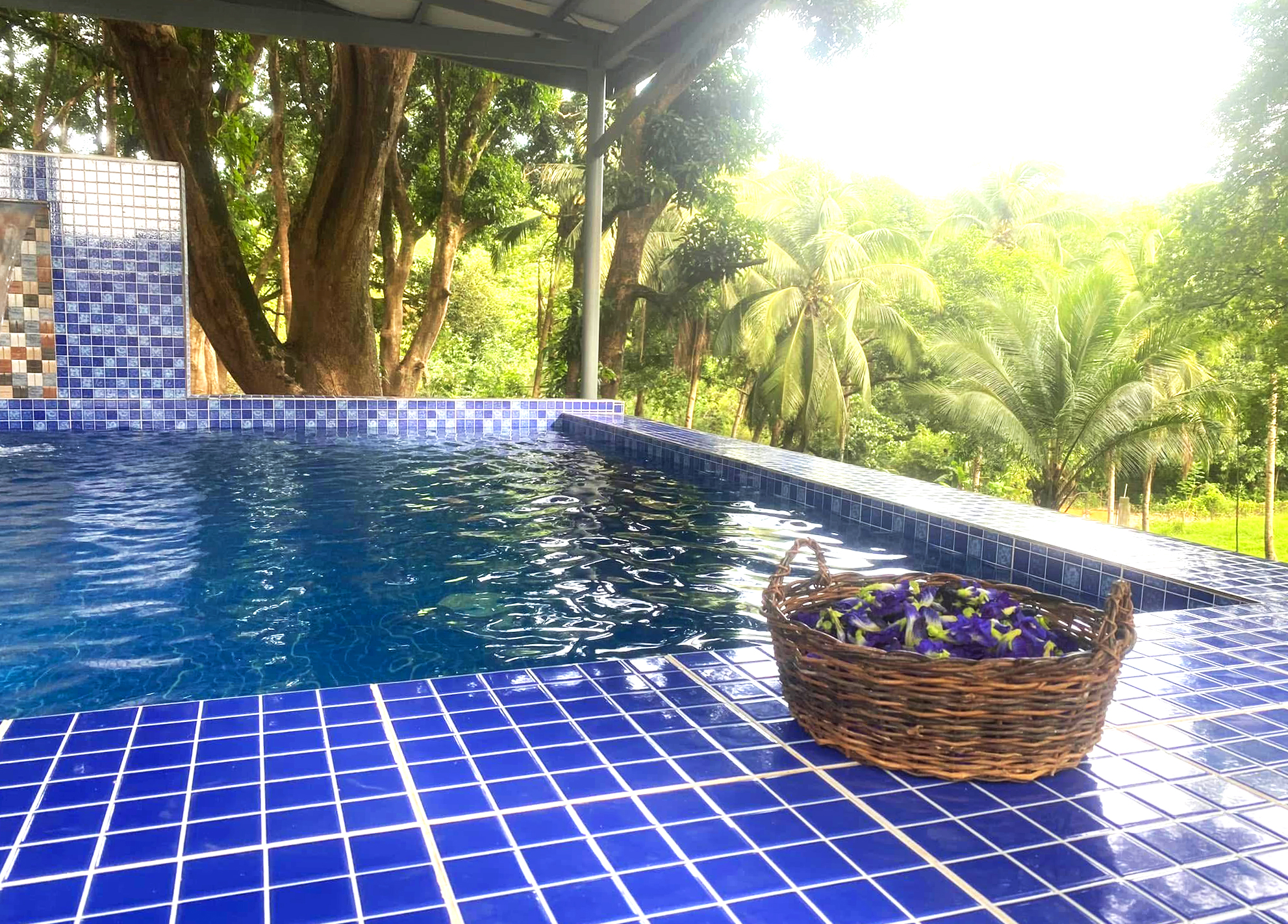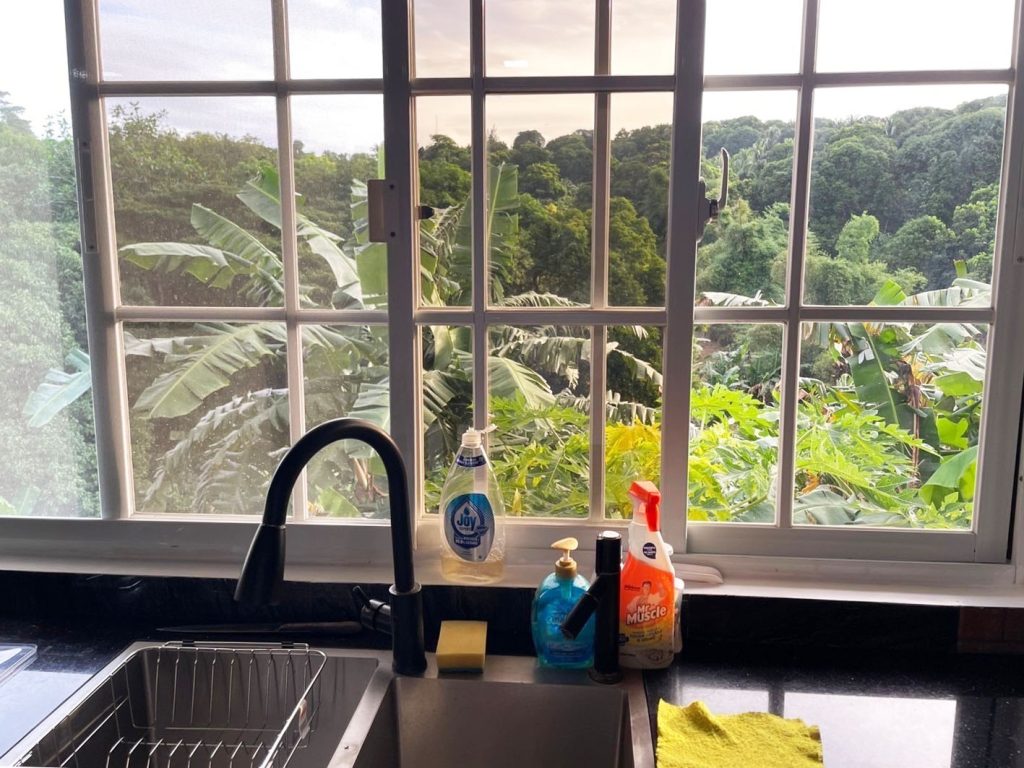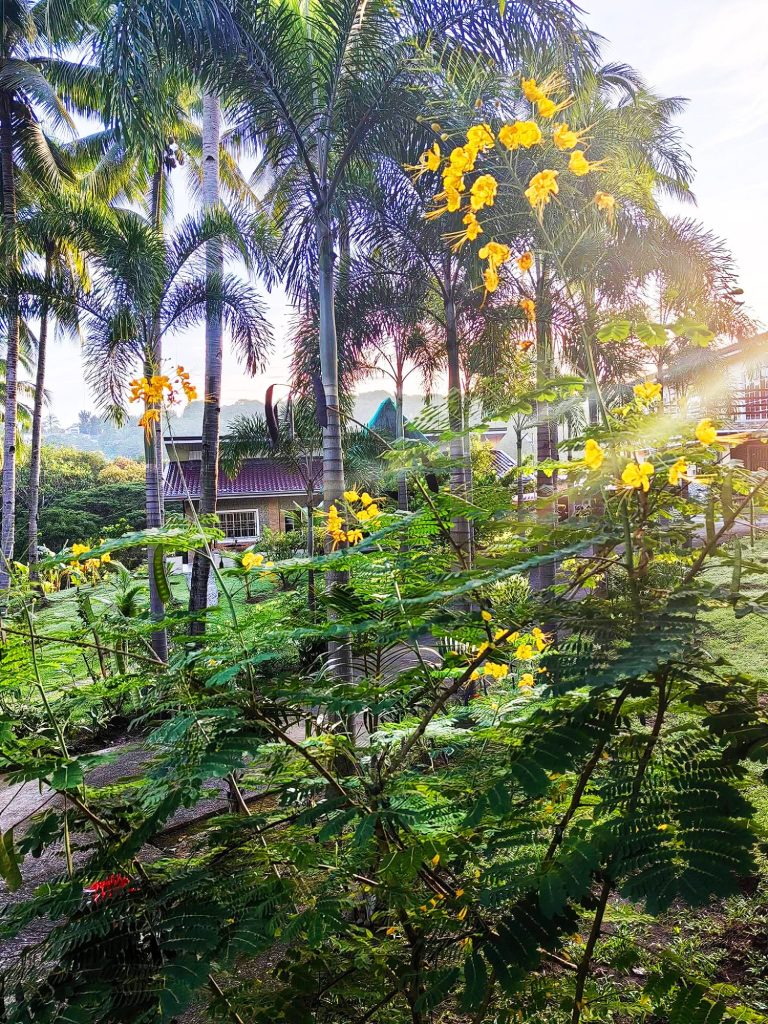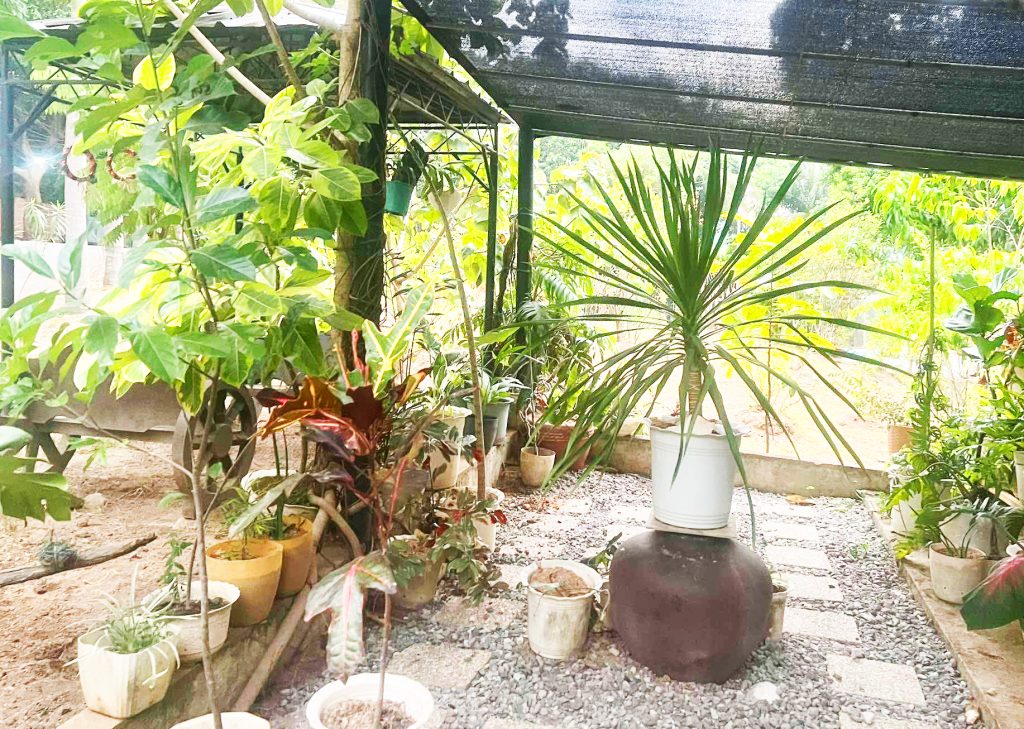 In the spacious garden, there are tropical fruit trees that are over a hundred years old, as well as a variety of organic herbs being cultivated.
