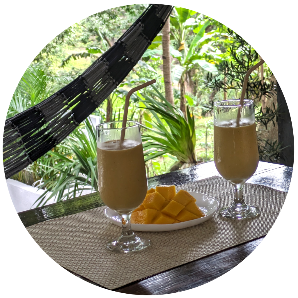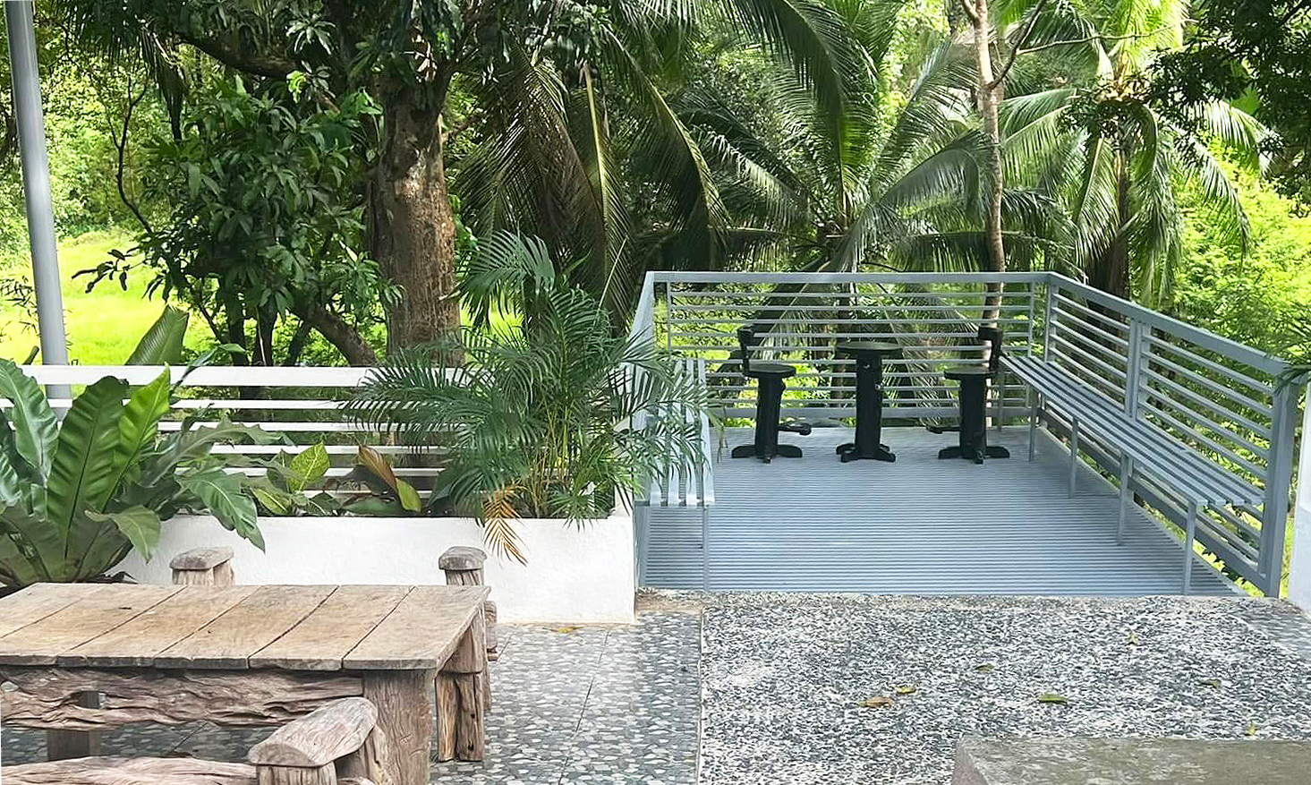 The spacious grounds are filled with flowers, trees, and especially an abundance of herbs and fruit. You can relax and enjoy tea at the gazebo or the second-floor veranda, or engage in conversation with JMT staff or other guests.
